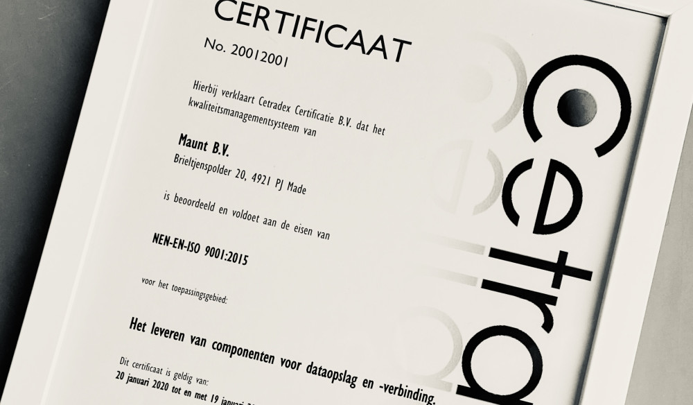 Do you wish to receive a copy of this certificate? Then you can send an email to info@maunt.com or contact us by phone at 085 - 90 26 600.
